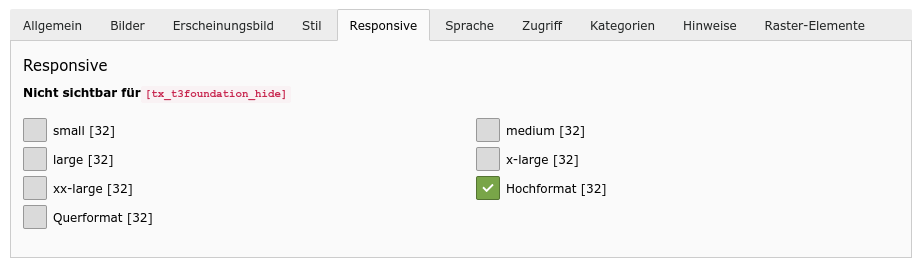 Mit den Responsive-Einstellungen kann gesteuert werden, ob ein Element nur bei einem Bildschirm